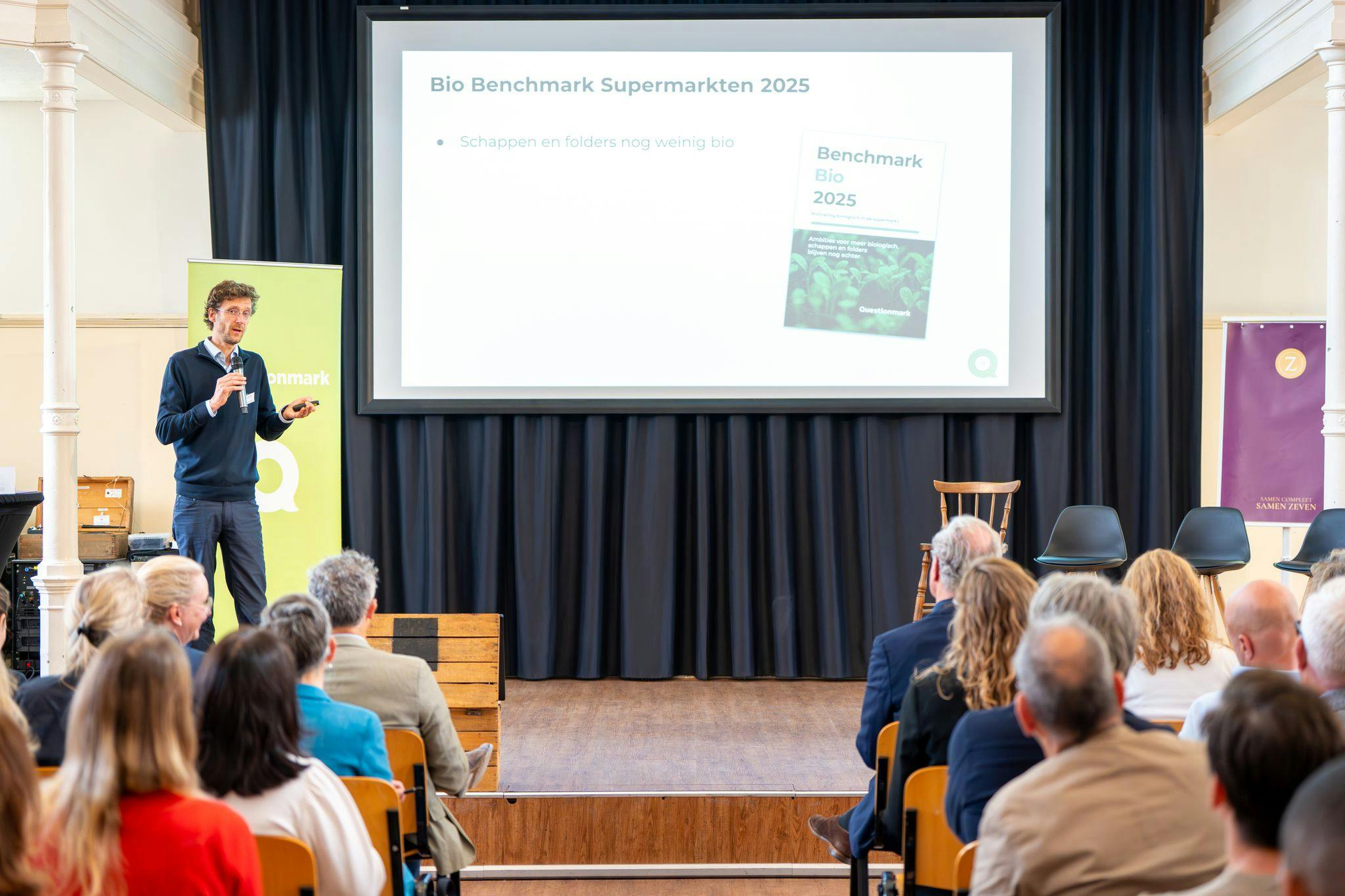 Lara Sibbing opende de bijeenkomst met een oproep tot samenwerking over de volle breedte van de keten. Ze benadrukte dat het behalen van 15% biologische consumptie in vijf jaar enkel mogelijk is als boeren, verwerkers, supermarkten, overheid en NGO’s gezamenlijk verantwoordelijkheid nemen. De bijeenkomst werd bewust gehouden onder Chatham House Rules, zonder aanwezigheid van pers en politiek, om een open gesprek te faciliteren. Questionmark organiseerde deze dag samen met Schuttelaar & Partners en de Robin Food Coalition.